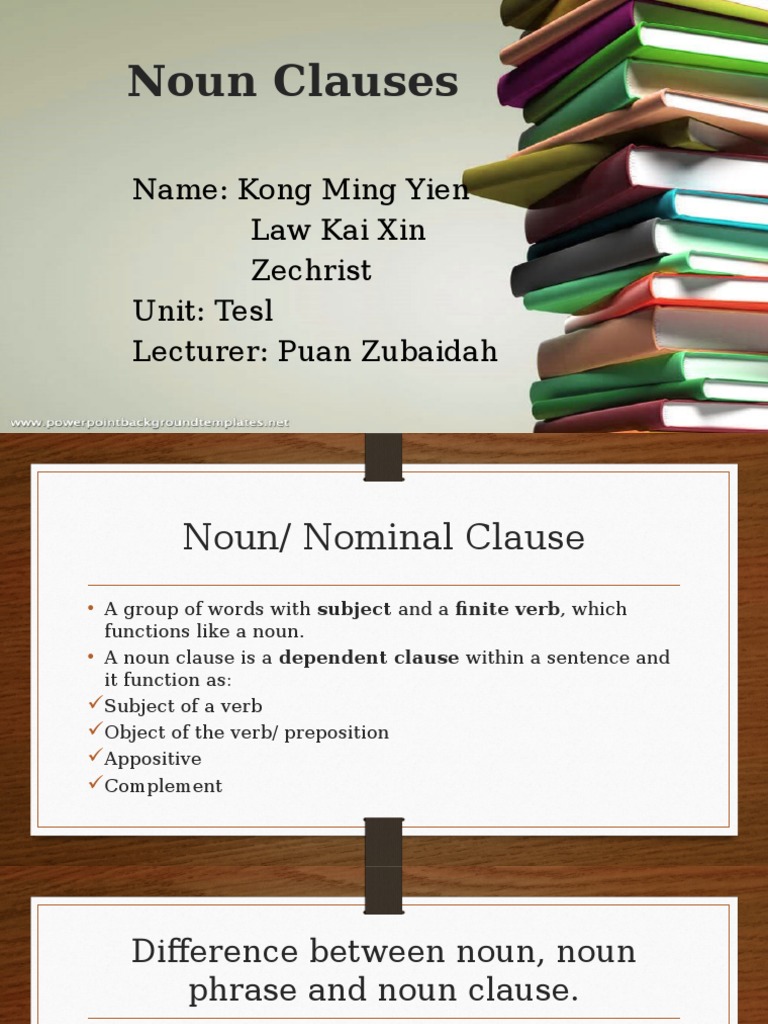 Noun Clauses Noun Clause from imgv2-2-f.scribdassets.com We did not find results for: What is a dependent noun clause. Check spelling or type a new query. Maybe you would like to learn more about one of these?